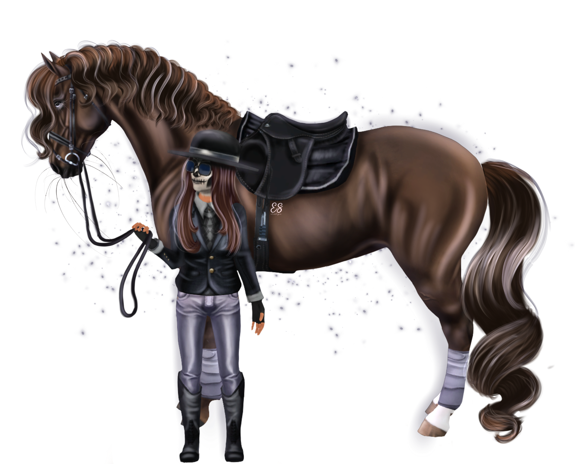 träns: svart och silverfärgat engelskt träns (globala) 86 sc/ 5200 js